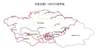 “中亚五国1:100万居民点数据(2010年)”:包括了中亚五国(哈萨克斯坦、塔吉克斯坦、乌兹别克斯坦、吉尔吉斯斯坦和土库曼斯坦5个国家)的首都、首府、主要城市和市级一下的居民点,数据投影选用GCS经纬度,WGS84坐标系;数据属性反映了中亚五国各级城市的位置和名称,该数据可以和数据库中其他的中亚矢量数据叠加。