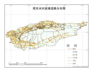 数据为塔里木河流域道路分布数据集,比例尺:250000,投影:经纬度,主要包括黑河流域内主要道路的空间分布及属性数据,属性字段:code(道路编码)、Name(道路分级)
