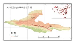 数据为天山北麓诸河流域铁路分布图,比例尺25000,投影经纬度,数据包括空间数据和属性数据,属性字段:code(铁路编码)。