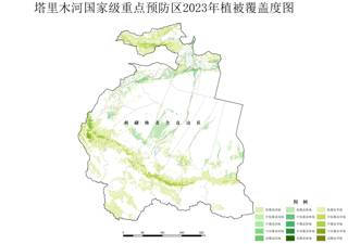 2023年塔里木河国家级重点预防区植被覆盖度数据集包括新疆维吾尔自治区阿克苏市、乌什县、阿瓦提县、泽普县、莎车县、叶城县、麦盖提县、巴楚县、和田市、和田县、墨玉县、皮山县、洛浦县、策勒县、于田县、民丰县、阿合奇县、阿拉尔市2023年年度植被覆盖度统计表和植被覆盖度图。