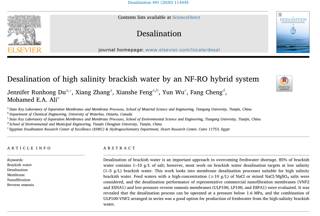 2018-2020年发表的项目相关论文8篇。分别是: ①"Desalination of high salinity brackish water by an NF-RO hybrid system";②“Enhancing the performanc...