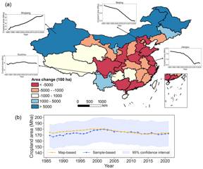 该数据集是利用谷歌地球引擎上的大量大地遥感卫星图像制作的。首先,根据前提知识、现有土地覆被基线图和时间加权动态时间扭曲法收集训练样本。其次,将从时间序列陆地卫星图像中获得的多年物候特征输入随机森林分类器,以获得每个像素的年度耕地概率。第三,采用 LandTrendr 变化检测算法将耕...