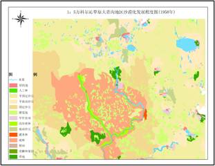 一、该数据数字化自图纸的《大沁他拉沙漠化发展程度图(1958)》,该图的具体信息如下: 主编:朱震达、邱醒民 编辑 :王一谋 制图:冯毓荪、姚发芬、吴薇、王建华、王周龙 制图单位:中国科学院沙漠研究室编制 出版社:西安地图出版社...