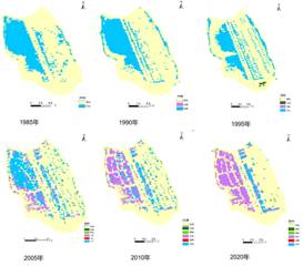 本研究基于Landsat卫星遥感数据以及1km分辨率的中国土地利用现状遥感监测数据,对长江下游地区下垫面地理实体信息进行解译和分析,识别了1985-2020年长江下游地区土地利用类型变化特征,分析了长江下游地区土地利用结构及其变化,为分析长江下游地区承灾体变化奠定基础。