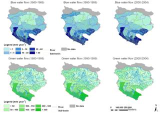 本数据是利用SWAT模型模拟得到的黑河流域蓝绿水数据。 数据主要包括全流域和各个子流域的蓝绿水及绿水系数: 4.1 Sub-basin 文件是子流域的分布图,格式是Shape file格式。本次模拟将黑河流域分为34个子流域。 4.1 Output.basin.(19xx)...