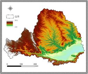 本数据集采用SRTM v41分幅数据,经过数据拼接、投影转换、裁剪等处理,生成渭河流域90 m分辨率数字高程模型(DEM)。