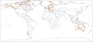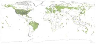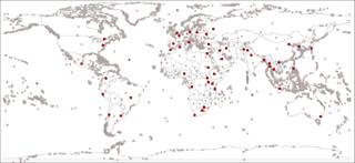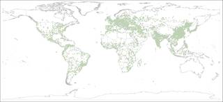 全球1:100万人口75万和90万之间的分布图(2013年)