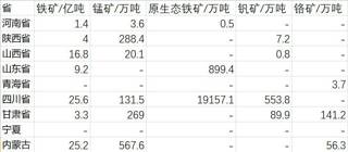本数据集对黄河流域各省份(河南省、陕西省、山西省、山东省、青海省、四川省、甘肃省、宁夏回族自治区、内蒙古自治区)铁矿、锰矿、原生态铁矿、钒矿、铬矿的储量,第一个工作表对数据收集进行了一个说明,后面的两张工作表就是2015-2016年黄河流域内的矿产资源储存量的具体展现。