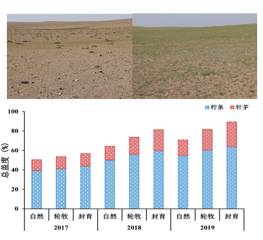 本数据集在2017-2020年期间,在内蒙古阿拉善左旗巴润别立镇巴音朝格图嘎查选择典型的退化的红砂—无芒隐子草放牧草地为试验样地,样地总面积3345亩,开展退化草地封育恢复与更新复壮及持续利用技术研究。(缺少2018年数据)