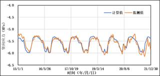 三峡泄2#坝段坝踵竖向应力2015年后计算值与监测值对比数据集