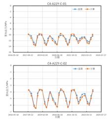 小湾拱坝坝踵竖向应力2017年后计算值与监测值对比数据集