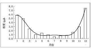 2005年黑龙江龙凤山大气本底站一氧化碳月均值