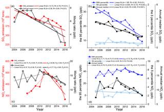 中国长江三角洲地区临安站地表NOX和SO2混合比的长期变化数据集(2006 - 2016年)