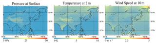 本数据集提供了六种常规空气污染物(即 PM2.5、PM10、SO2、NO2、CO 和 O3)的地表网格场,以及 WRF 模式模拟的地表风速(u、v)、气压(psfc)、相对湿度(RH)和温度(temp)场。空间和时间分...