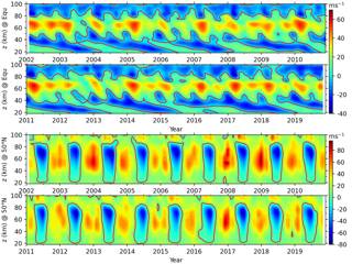 平流层和中间层的纬向风在大气动力学和航空学中起着重要的作用。然而,在这个高度范围内直接测量风是困难的。本数据集利用梯度平衡风理论和SABER仪器观测到的温度和气压,建立了2002-2019年海拔18-100 km、纬度50°S-50°N的月平均纬向风数据集。赤道80公里以上的潮汐别名...